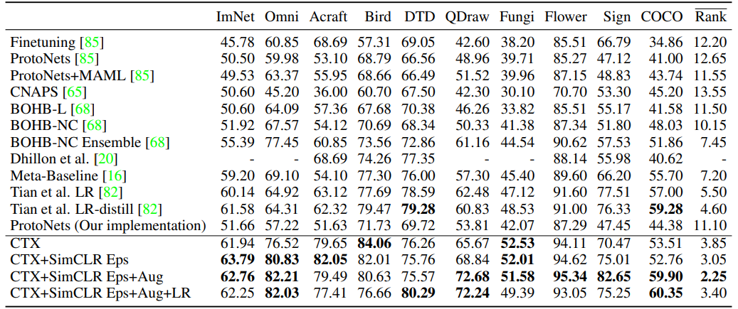 - Meta-Dataset에 대한 본 모델의 성능 평가를 통해, 대부분의 데이터에 SOTA임을 증명하였습니다.