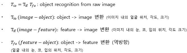 변환 행렬은 다음과 같이 구성되며, Tio를 구함으로써 최종적으로 object recognition의 목표에 달성하게 된다. 여기서 한 가지 주의할 점은 Tfo라는 역방향 변환이 있다는 것이다. 이는 추후에 읽게 될 논문에서 <Routing>이 등장하는 계기가 된다. 일단 TRAFFIC모델에서는 Tfo가 단순 layer사이 weight로서 학습되는 값이기 때문에, 상관이 없다. 다시 말해, Tif, Tio는 image와 object/feature사이의 관계이기 때문에 값으로 구할 수 있으므로, 그 사이를 연결해 주는 행렬의 weight만 구하면 되는 것이다. 그리고 이 고정된 변환 행렬을 통해, 일정한 예측을 할 수 있다.